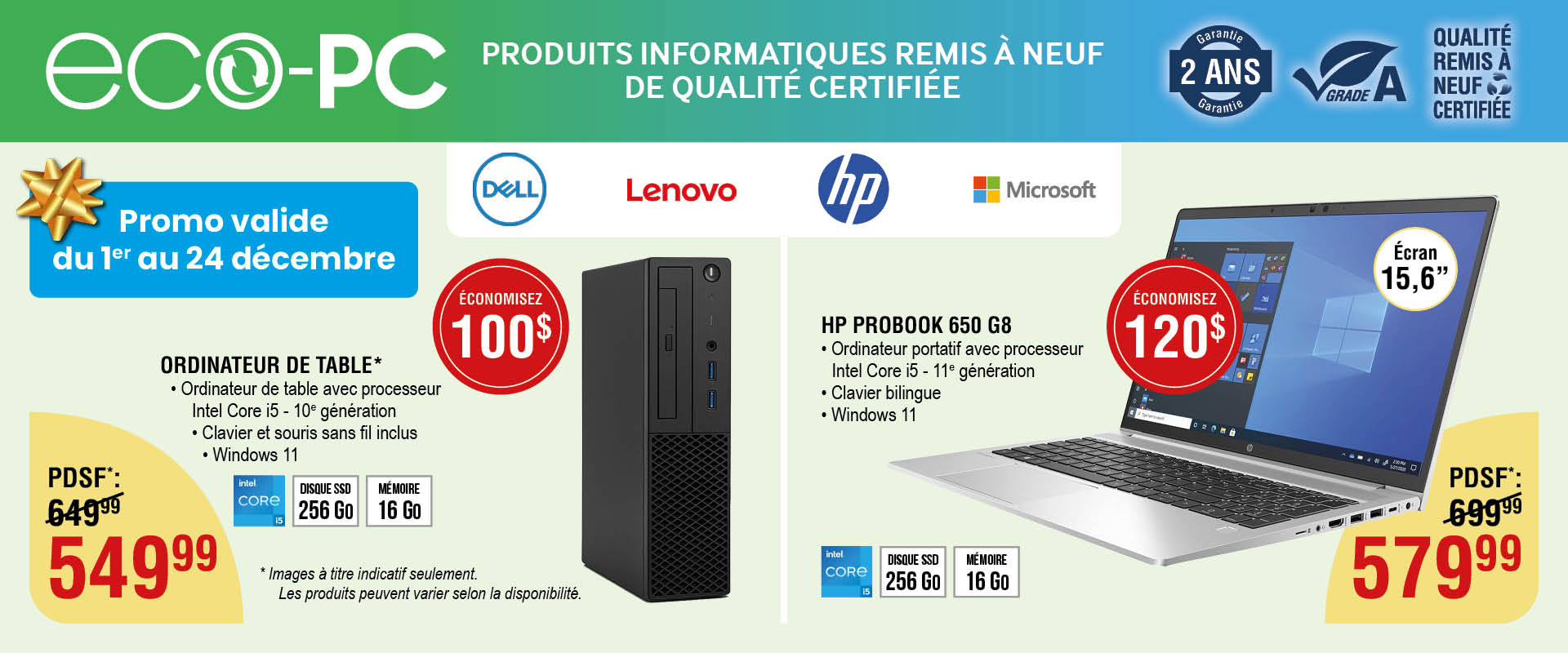 Tous les appareils remis à neuf Eco-PC proviennent de marques bien connues telles que Dell, HP et Lenovo